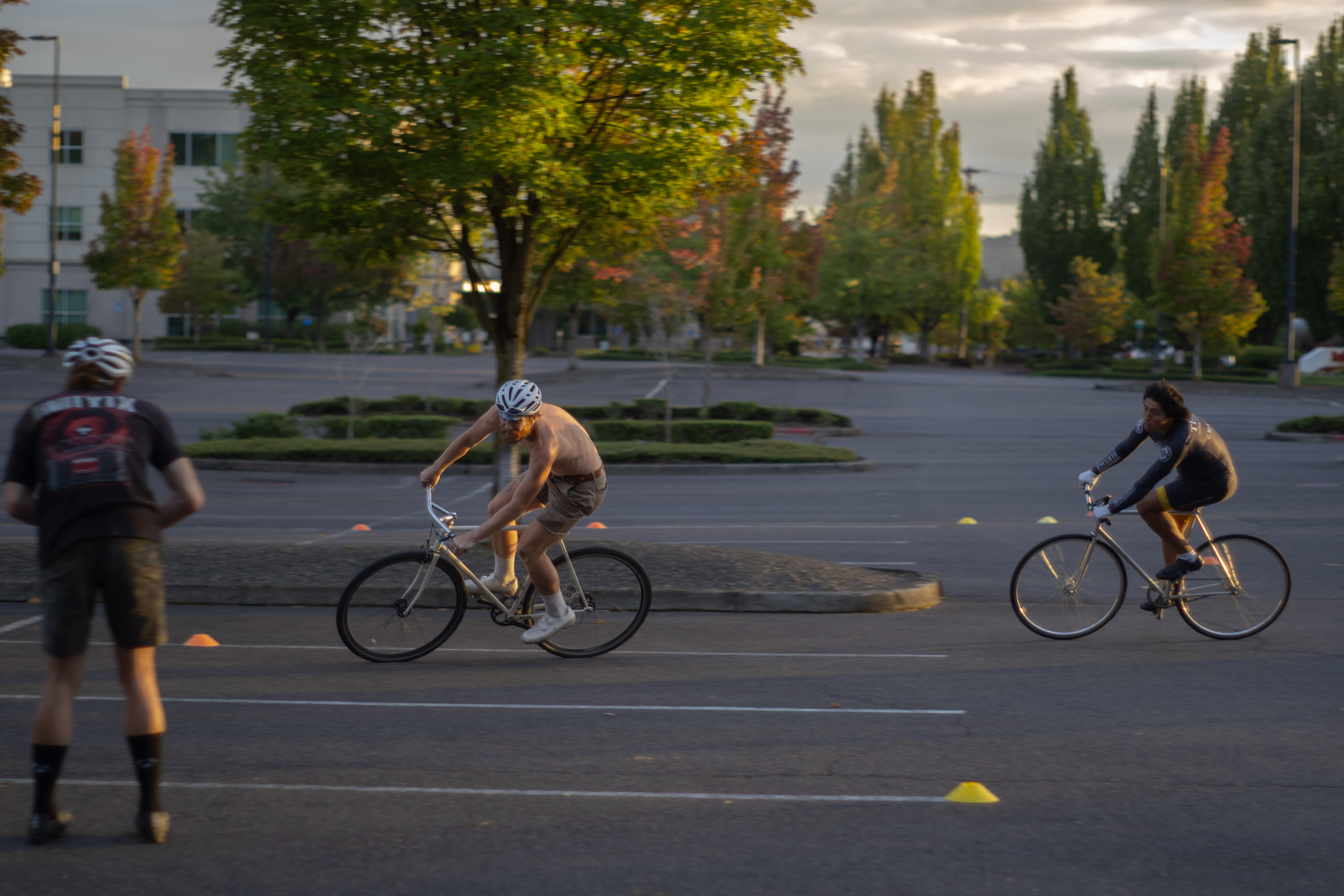 Tucked behind Powell Park only a few blocks away from Highway 26 a collective of friends gathered together to share their passion for fixed gear bikes. Kindly put together by Fio Ballerini and sponsored by A and B bike, PNX Bags, Skratch Labs, and Cycle Path PDX.