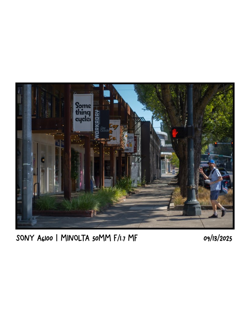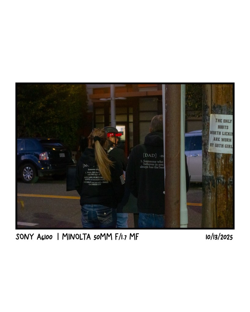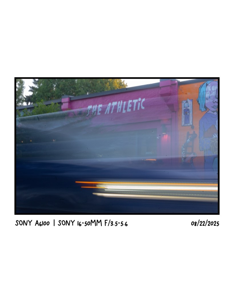 This photo is a great example of having a characteristic to it that is hard to explain but I just love it. The way the blur kind of lines up with The Athletic signs and the way the light on the car pulls across the screen is great. Taken at during a Swift Industries pop up where they also had flash tattoos (mainly why I went). I got a spork tattooed on my leg and also went down the block and got a walk-in tattoo of a wedding band as well!