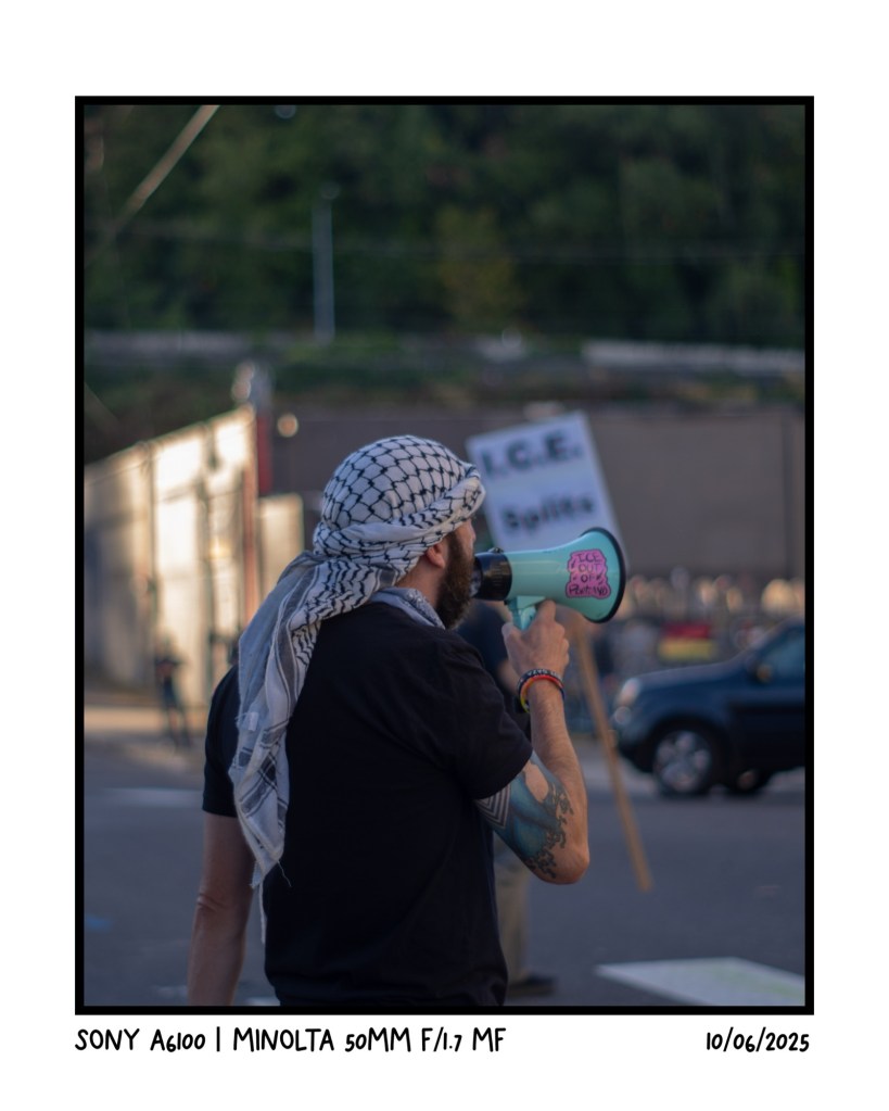 October was a little bit of a tipping point for me. Lots of rhetoric was being created about Portland being a “warzone” or “burning down by terrorist Antifa” and I felt it was my duty to do what I could to shed light on what actually goes down. This gentleman (also a veteran) is by far one of the most vocal and consistent protesters I saw at the ICE facility. I generally tried to not capture photos of protesters but after talking with him multiple times I got his permission to take his photo!