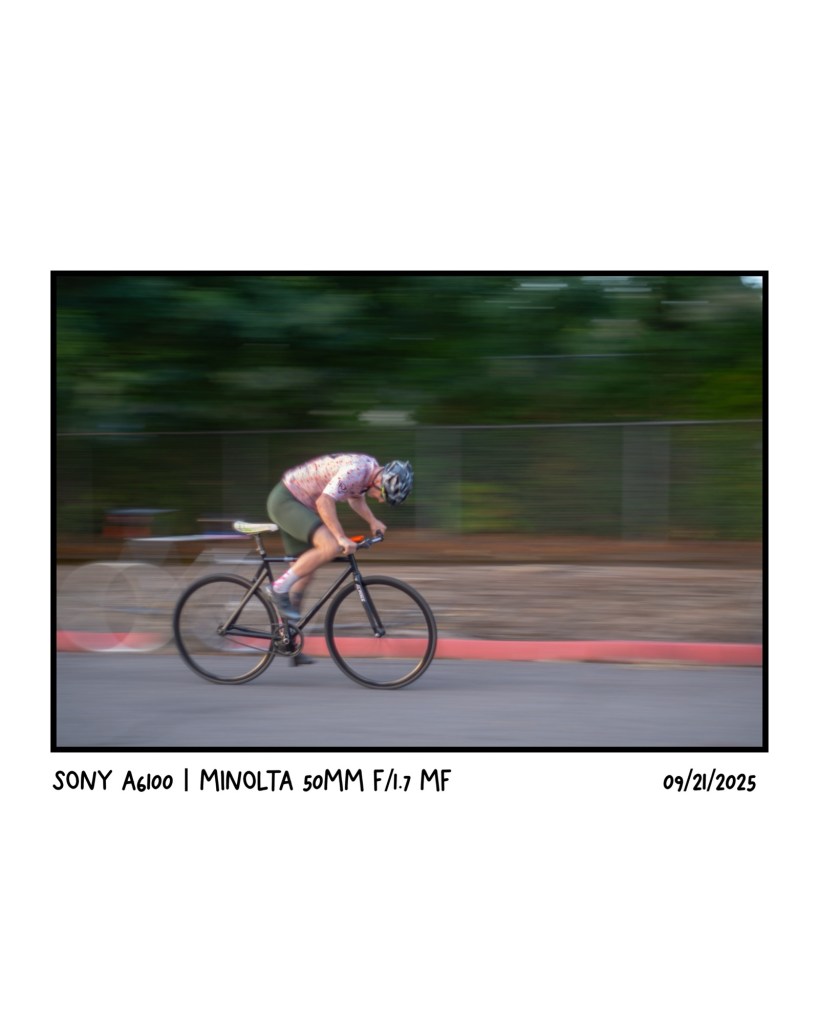Fixed gear bikes have always been something I have admired from afar. Having tried it myself a year or so ago I know it is not for me but have HUGE respect for the skill required. This photo was captured during a Portland Fixed Gear event/race I went to. Cyclist (flow_pony on Instagram) in this pic has flippin cannons for legs, and is a prime example of why I respect fixie riders so much. This was captured during one of the races right as they come out of a super tight 180 degree into a long straight away meaning they had to SPRINT.