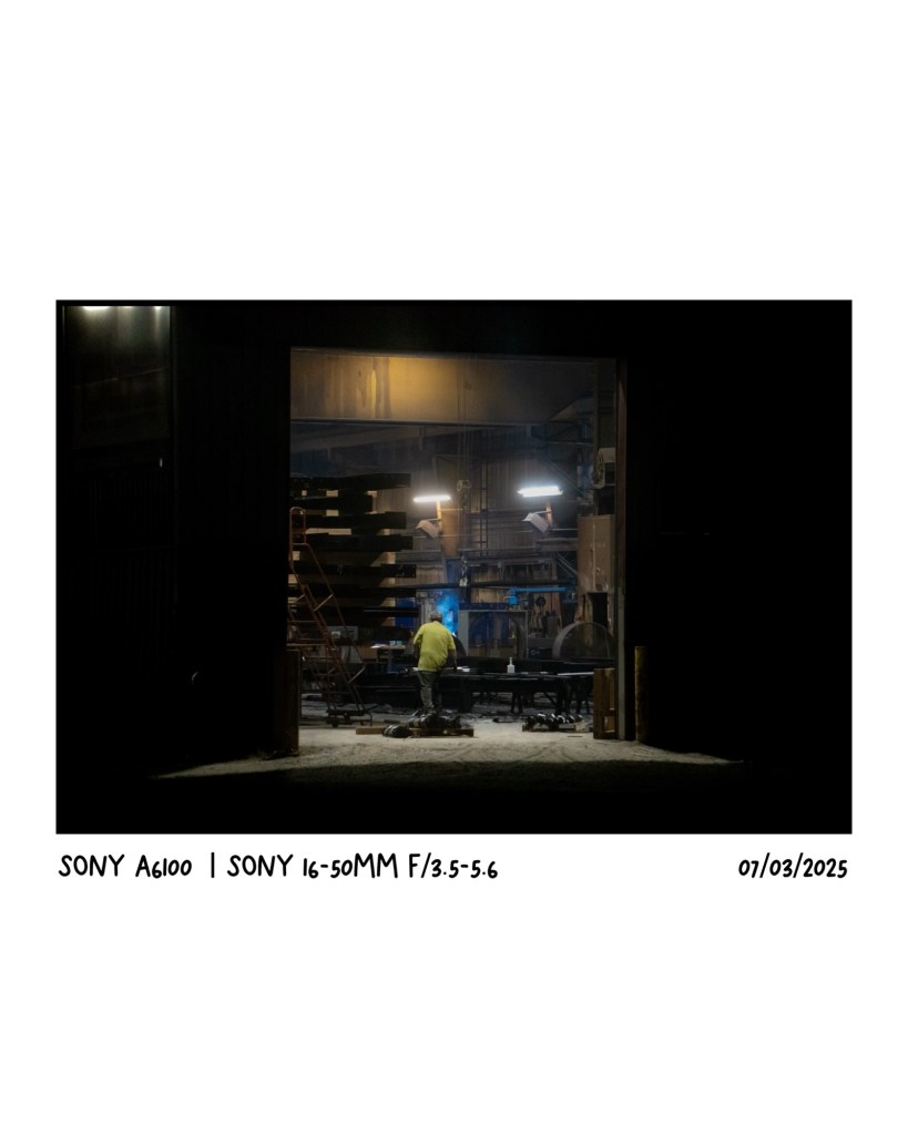 One of the first times I really tried to go out and take photos this year during the night. I was lucky enough to stumble upon this gentleman working and capture this (with some help from Lightroom). I love the silhouette and framing of the bay doors and the way it pulls your eyes towards him.